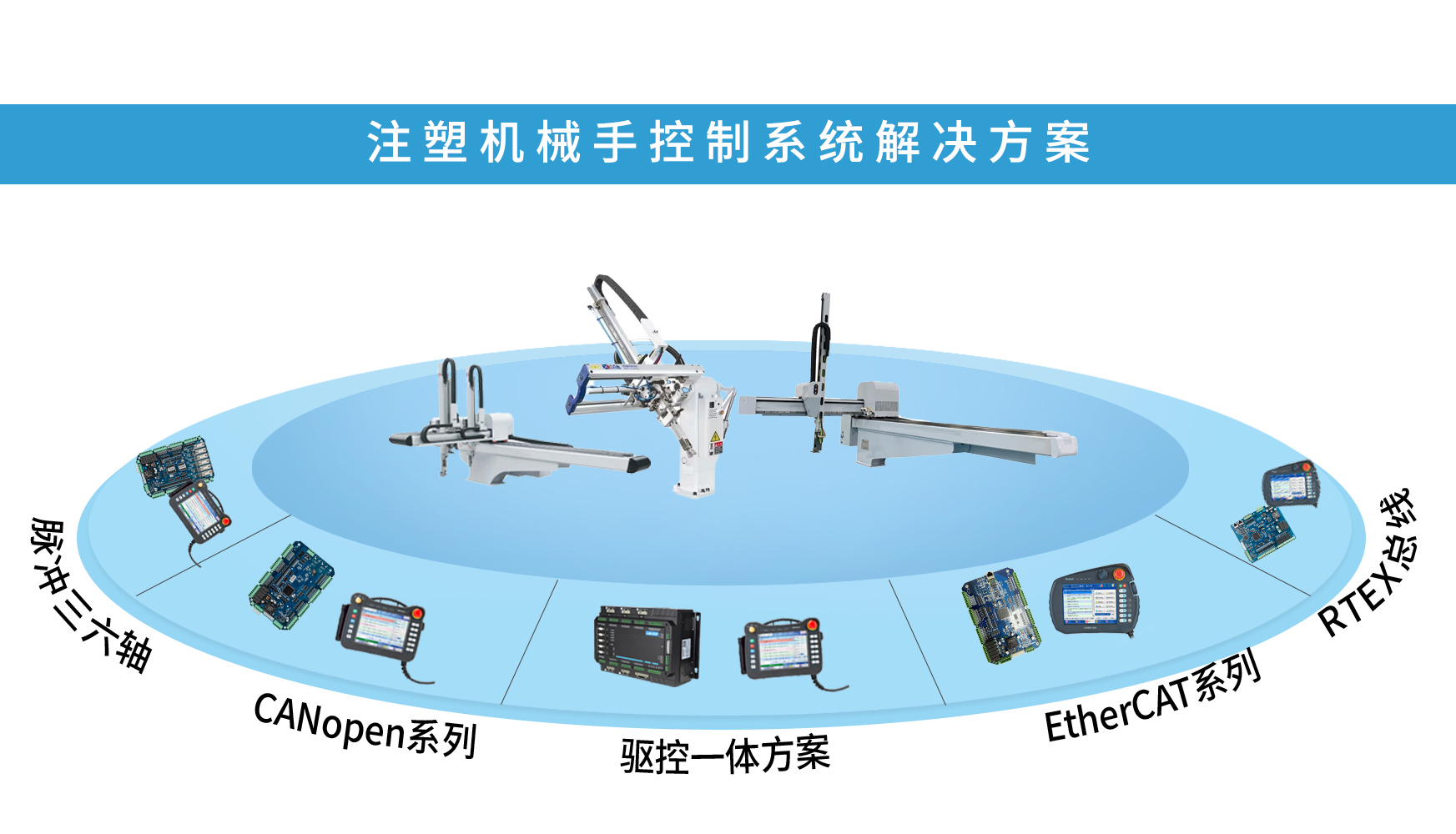 針對注塑市場領域開發出了覆蓋99%工藝應用的產品係列,包括脈衝三六軸羞羞动漫网站、CANopen羞羞动漫网站、EtherCAT羞羞动漫网站、RTEX總線羞羞动漫网站、五軸多合一驅動、驅控一體羞羞动漫网站等。