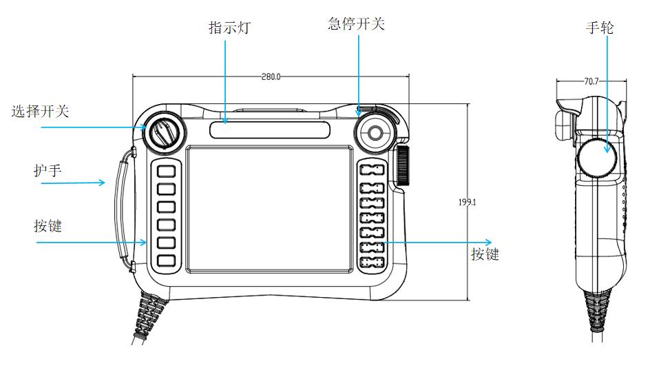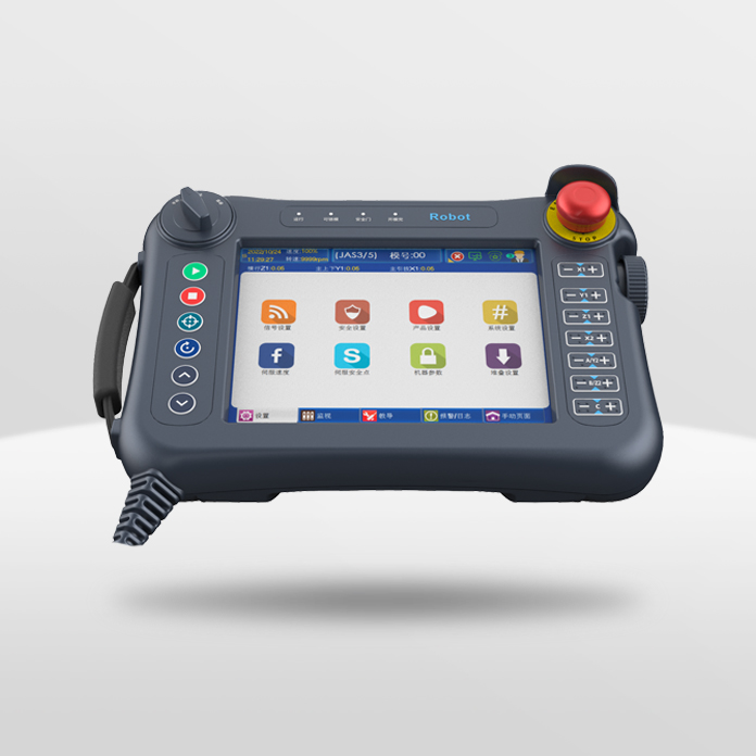 HT0806機器人示教器(QT係列),QT 界麵開發平台,支持用戶自主定義人機界麵。應用示教器完成對機器人的手動操控,羞羞免费视频科技的示教係列產品,國產自主研發,支持靈活示教、在線編程;其工業化設計,防水,防摔,具有三級工業EMC等級。